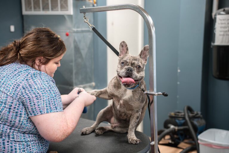 We understand. Some dogs just don’t like their feet to be touched. Many dogs will yelp or cry any time someone takes hold of their paws; especially if it is someone they don’t know well. But not to worry; we have a few tricks up our sleeves to help calm and distract our more anxious guests. You can trust that our groomers will treat your pet like their own and, your pet will adapt to the idea of their feet being handled over time.