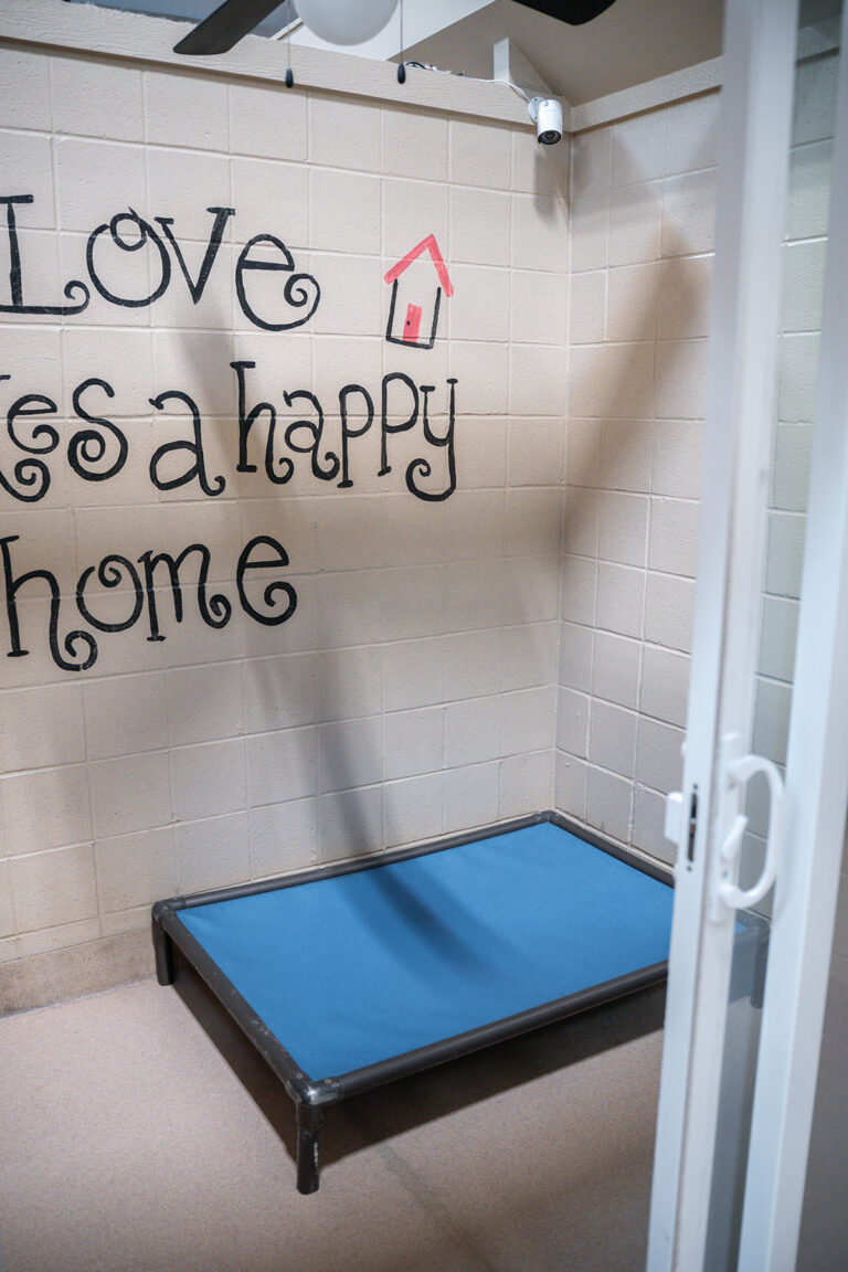 With 48 square feet of cage-free space, our year-round climate-controlled rooms are more colorful and are outfitted with premium Kuranda luxury dog bedding, beautiful décor, in-suite surround-sound music, and television entertainment tuned to Animal Planet or DogTV — displayed on a 39-inch HD flat-screen TV, bowls for filtered water and top-quality meals consisting of premium 5-star rated natural formula kibble designed for sensitive stomachs.