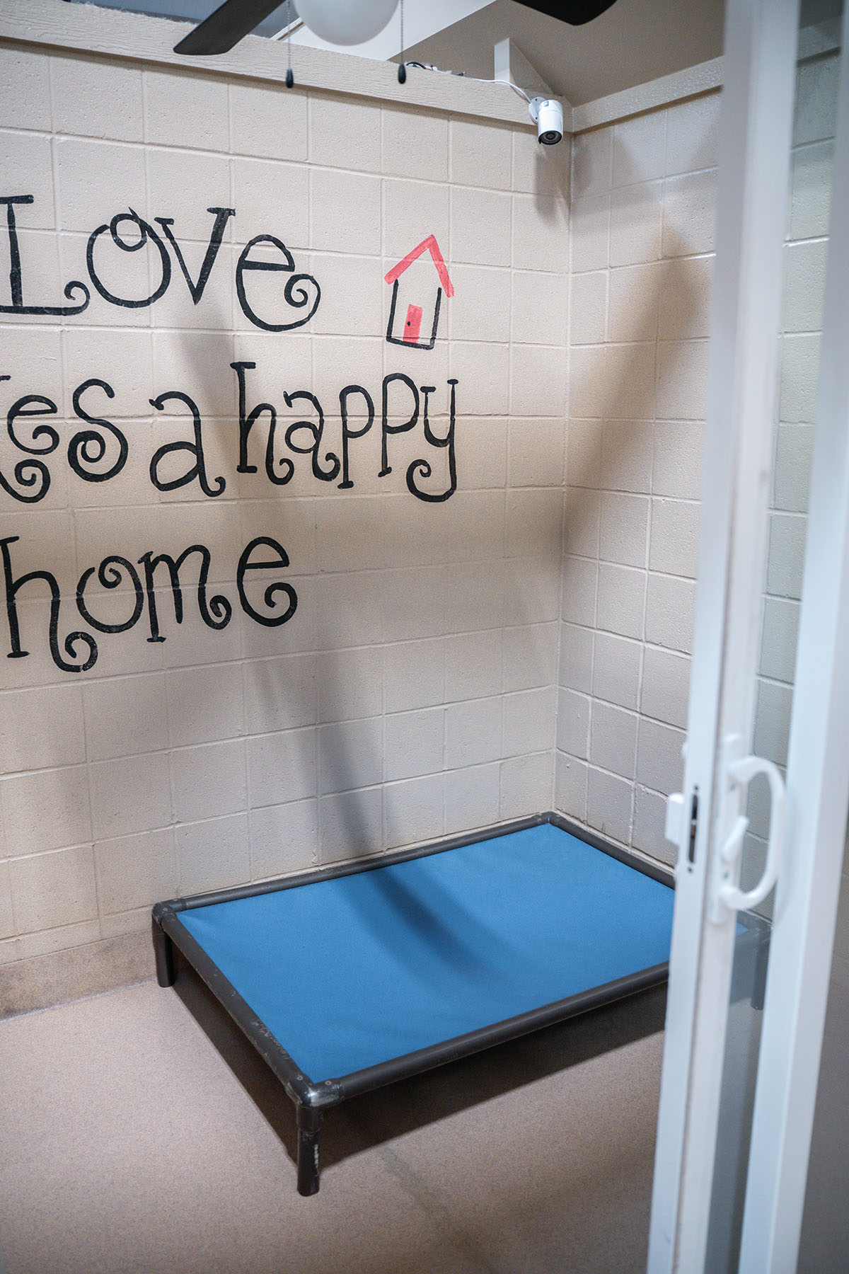 Every overnight guest receives our home-away-from-home attention. Care includes three healthy meals a day, fresh water at all times, a clean and sanitized throw for bedding comfort, and an abundance of pats and hugs. Your pet will receive multiple walks during the day and lots of one-on-one attention by our caring team members. We can feed any (owner provided) special diet your pet may require as well as administer any medications, as a service. We also perform a nightly health-check after dinner to ensure that our guests are healthy and happy during their stay.